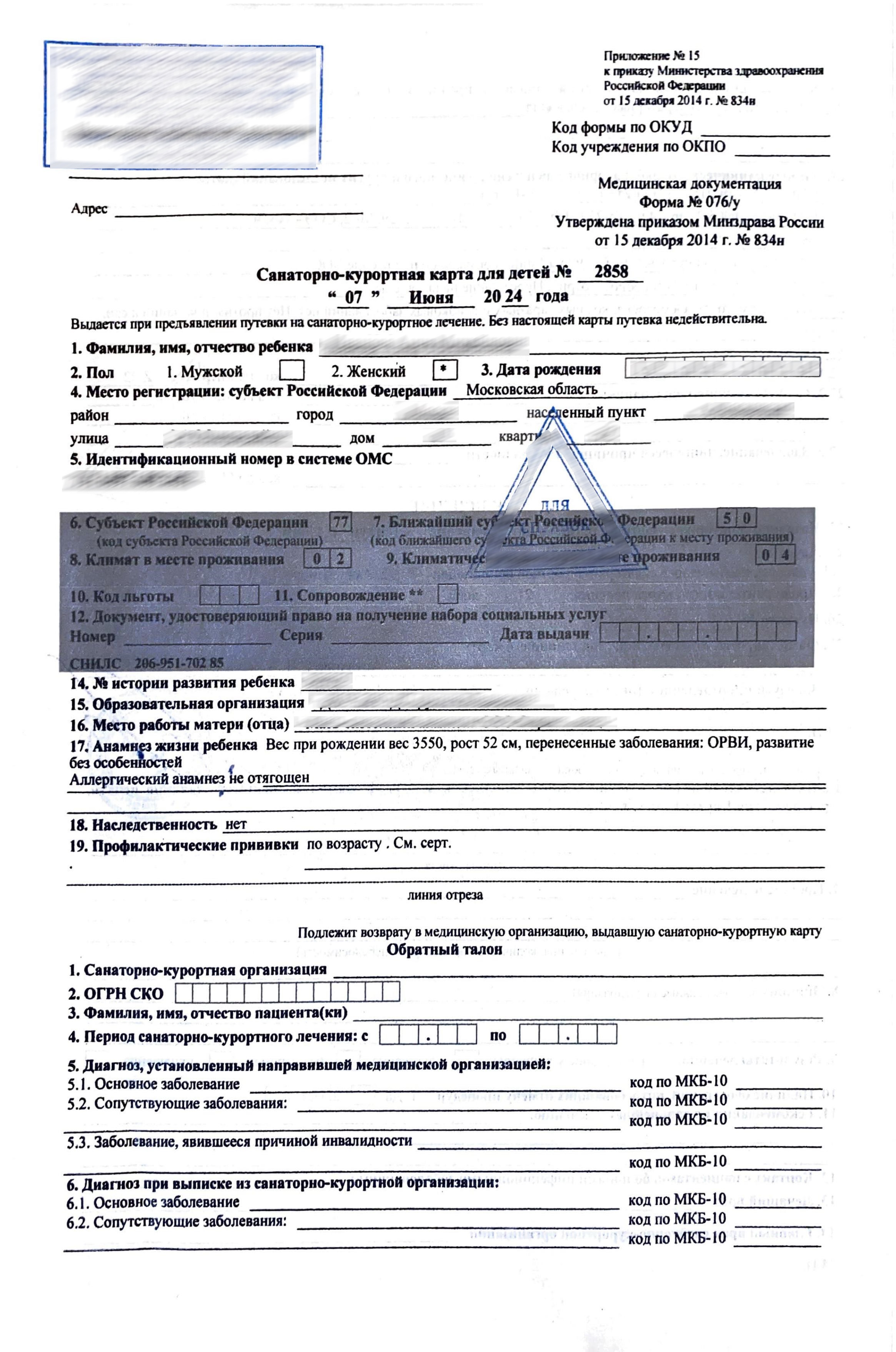 Купите санаторно-курортную карту по форме 076/у-04 в Москве.
