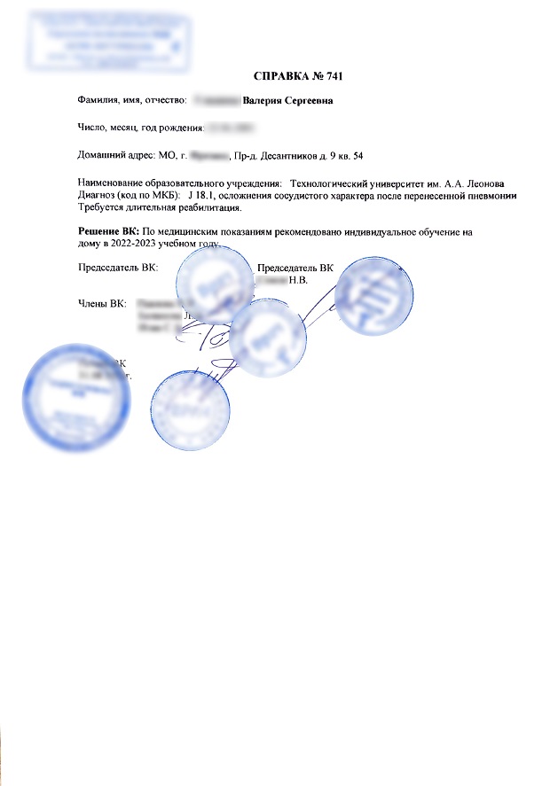 - Подтверждение вашего медицинского состояния для дистанционного обучения