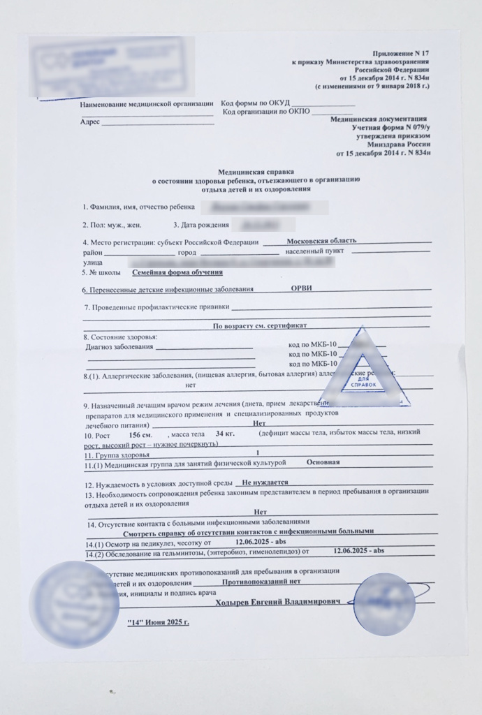 Купите справку в лагерь по форме 079/у в Москве.