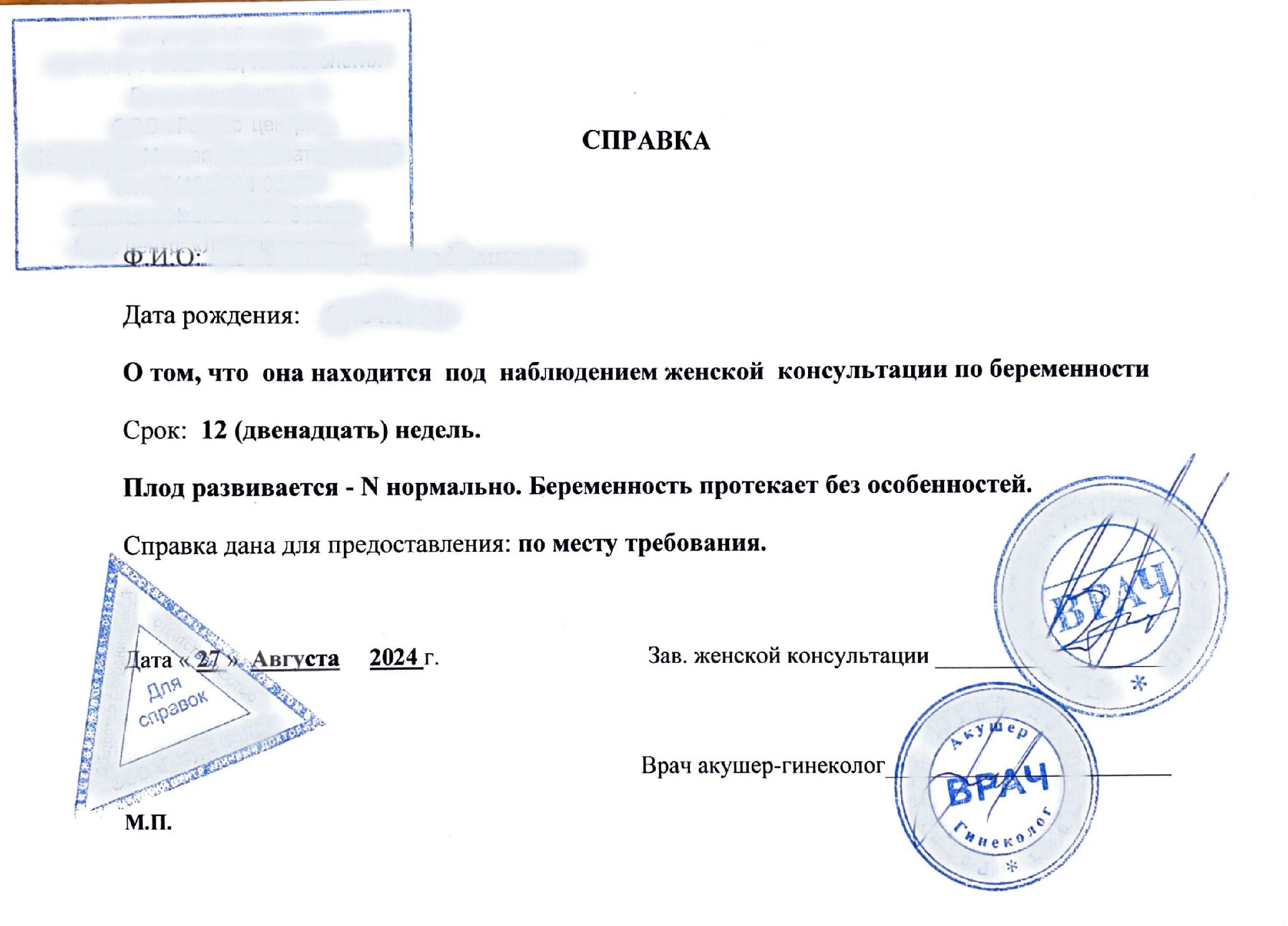 Купить справку от гинеколога. В Москве.