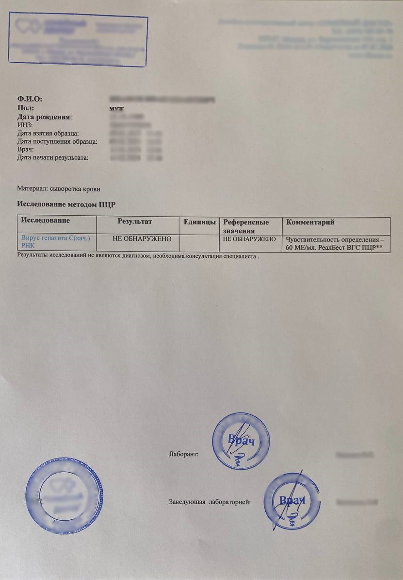Оформление Анализа на гепатит С (РНК) без посещения врачей