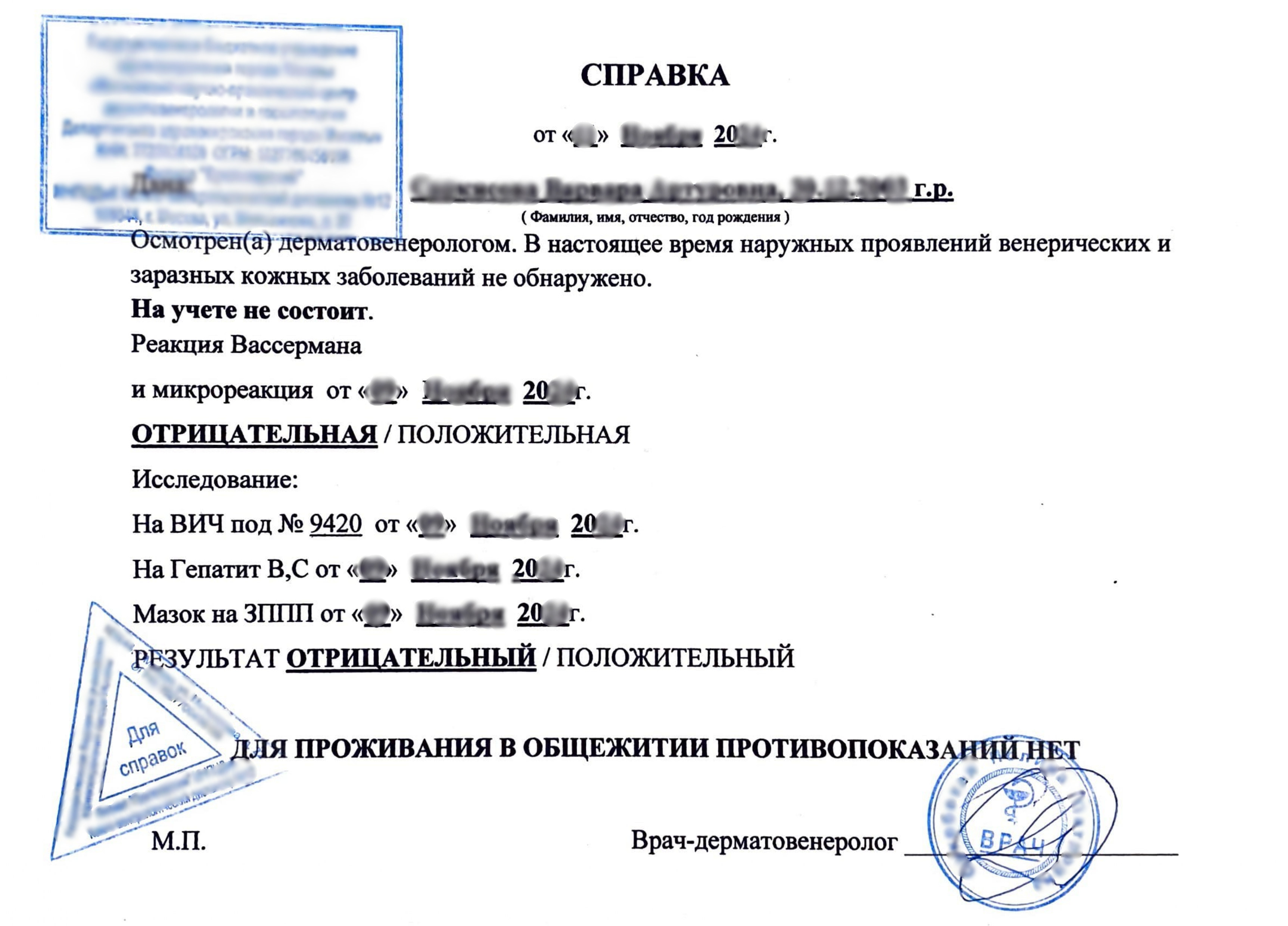 Общая информация о Справке из Кожно-венерологического диспансера (КВД)